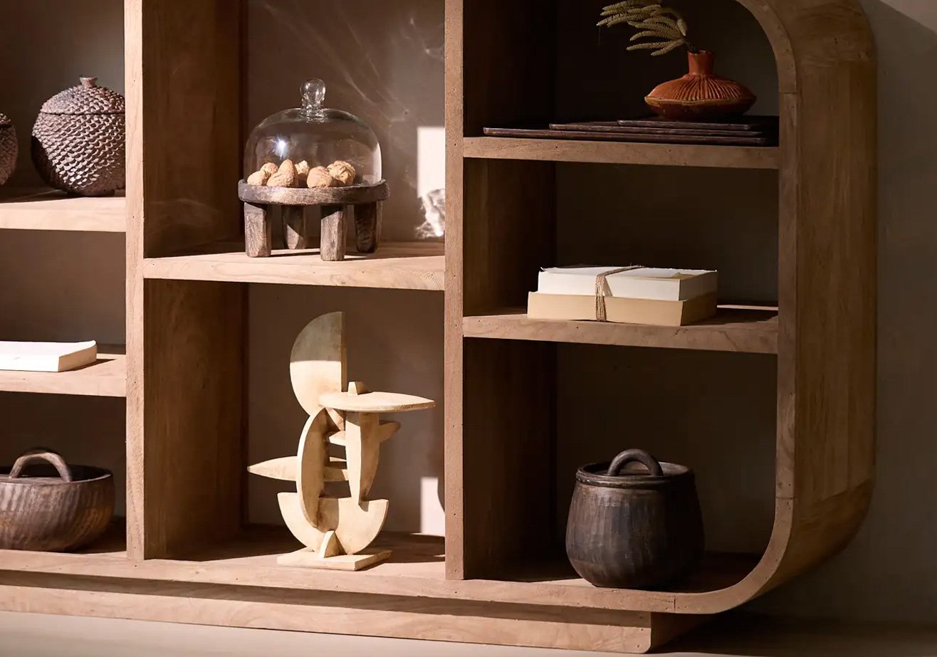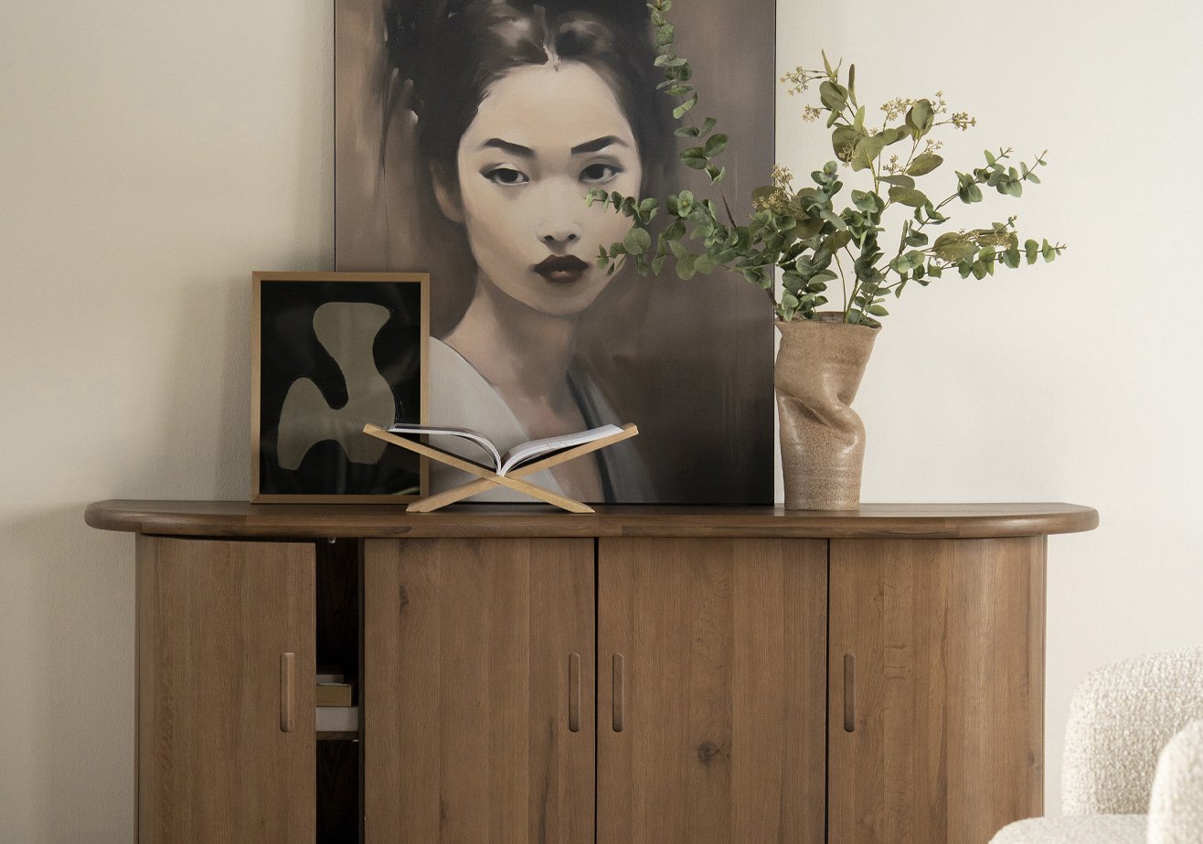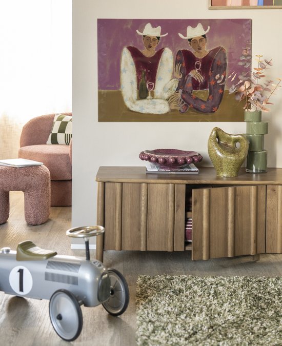 Combineer vintage vondsten met kleinmeubelen uit onze collectie, zoals bijzettafels of kasten, om oud en nieuw moeiteloos met elkaar te verbinden.