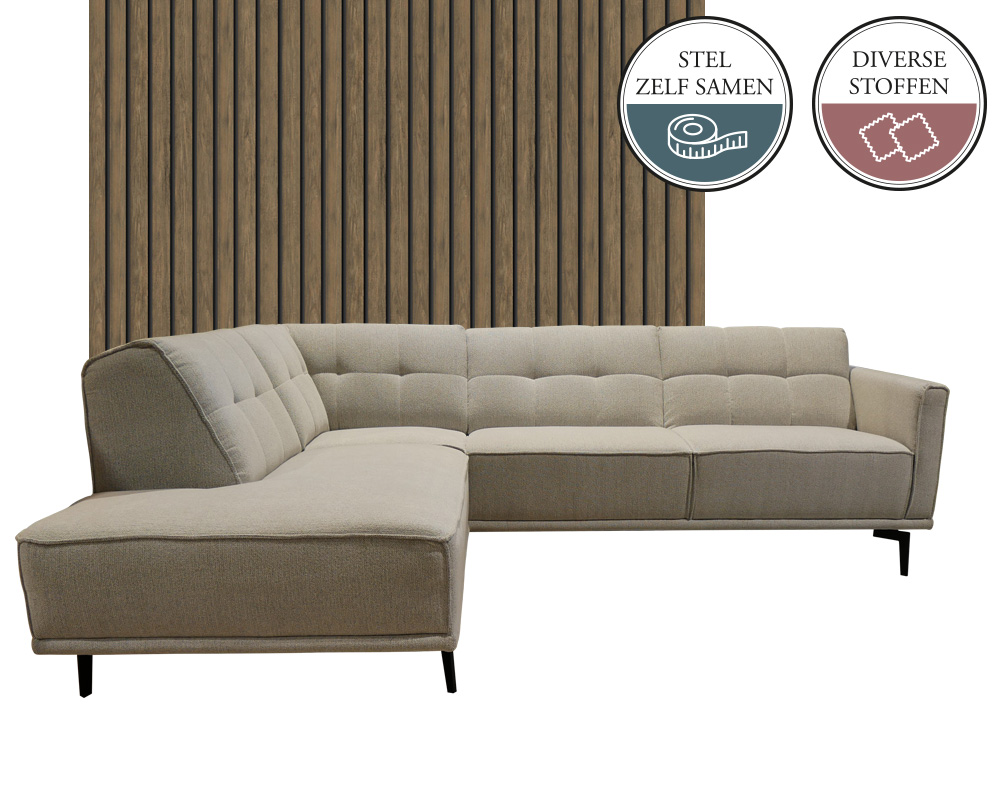 Een fauteuil, 2-zits, 3-zits etc… zijn standaard opties. Wil je echter zelf je droombank samenstellen, kijk dan onder Elementen.