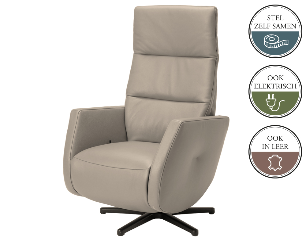Als je kiest voor de manuele variant, dan is er een gaslift als extra optie te bestellen! Deze relaxfauteuil is zowel manueel, elektrisch verstelbaar als met Sta Op functie mogelijk.