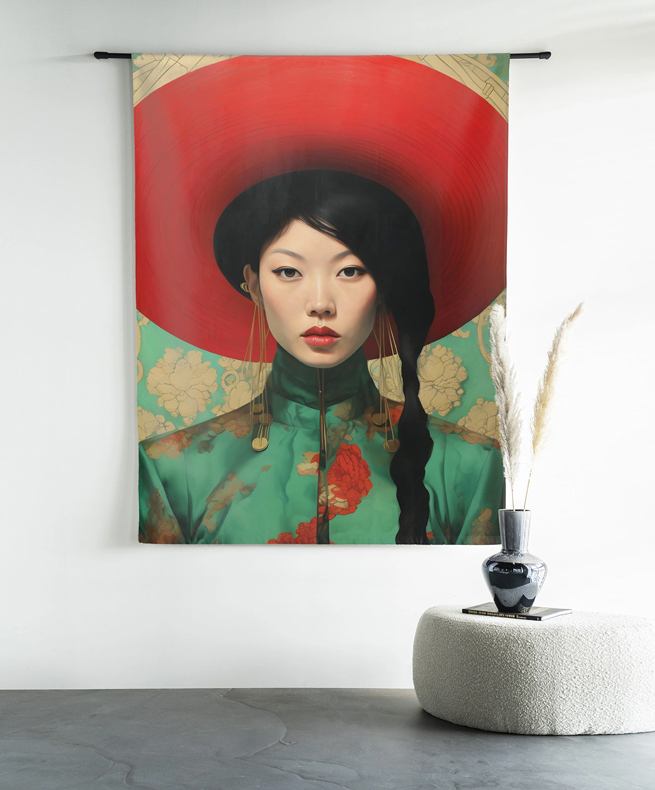 Onze wandkleden worden bedrukt met het door jouw gekozen kunstwerk en worden vervaardigd met een pees, voor een wandkleed in frame. Dit wandkleed is gemaakt van 100% katoen en geeft ieder kunstwerk een rijke uitstraling en matte look.