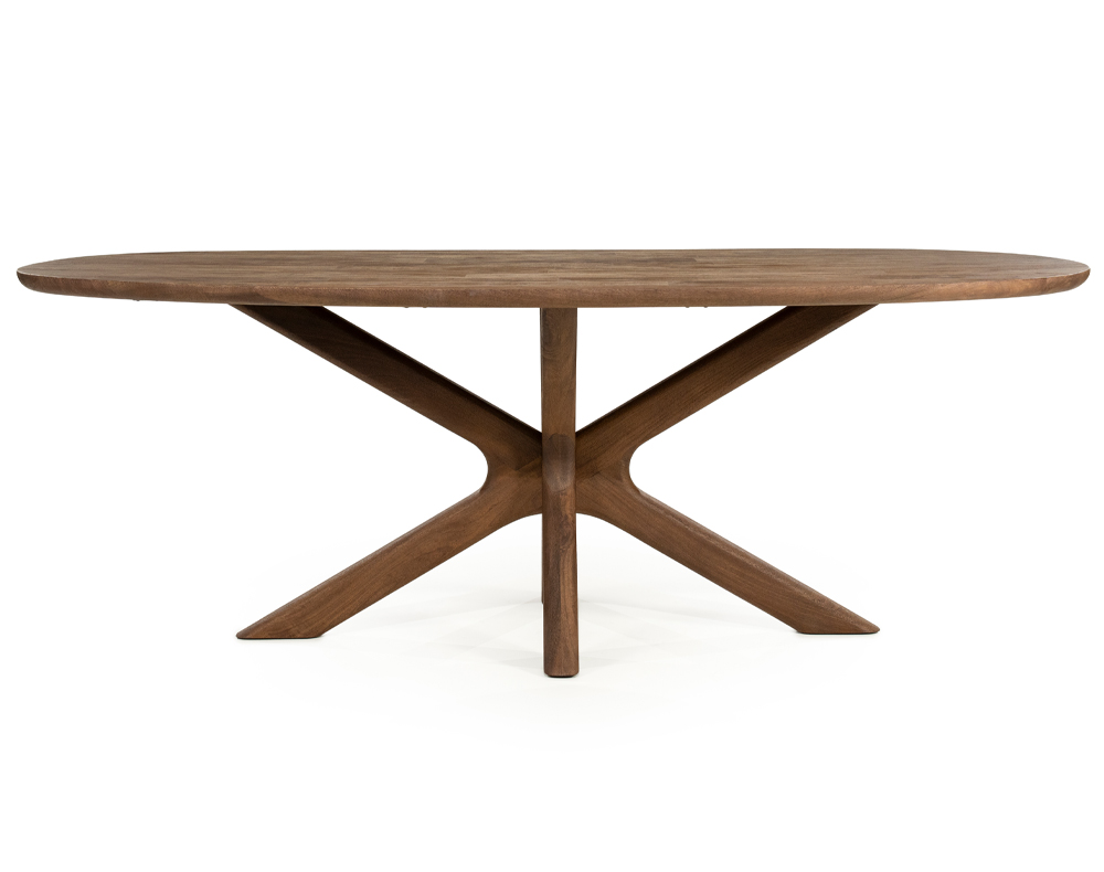 De BEAU Eettafel is zowel rond - 150 cm - als in Deens Ovaal -160, 210 of 260 cm - te verkrijgen. De tafel is gemaakt van geborsteld Mango hout.