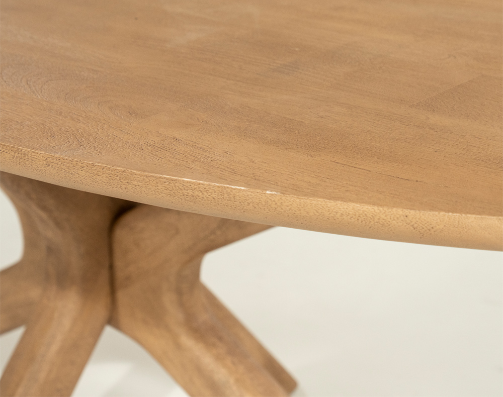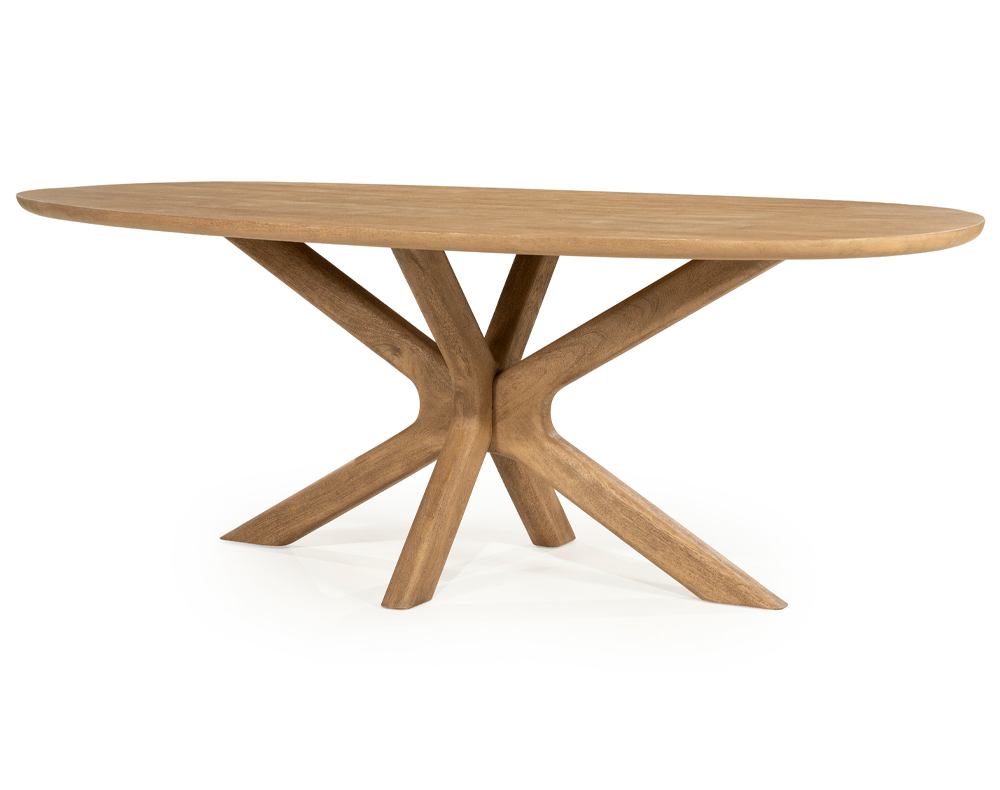 De BEAU Eettafel is zowel rond - 150 cm - als in Deens Ovaal -160, 210 of 260 cm - te verkrijgen. De tafel is gemaakt van geborsteld Mango hout.