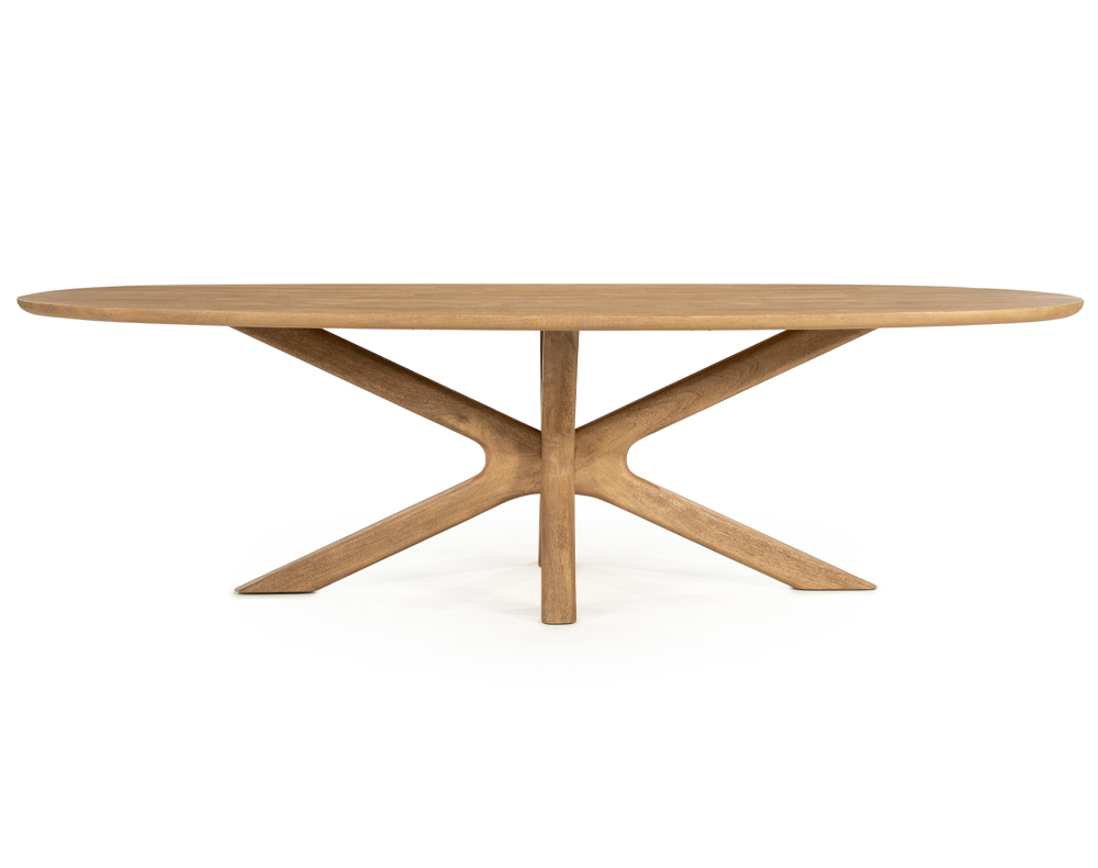 De BEAU Eettafel is zowel rond - 150 cm - als in Deens Ovaal -160, 210 of 260 cm - te verkrijgen. De tafel is gemaakt van geborsteld Mango hout.