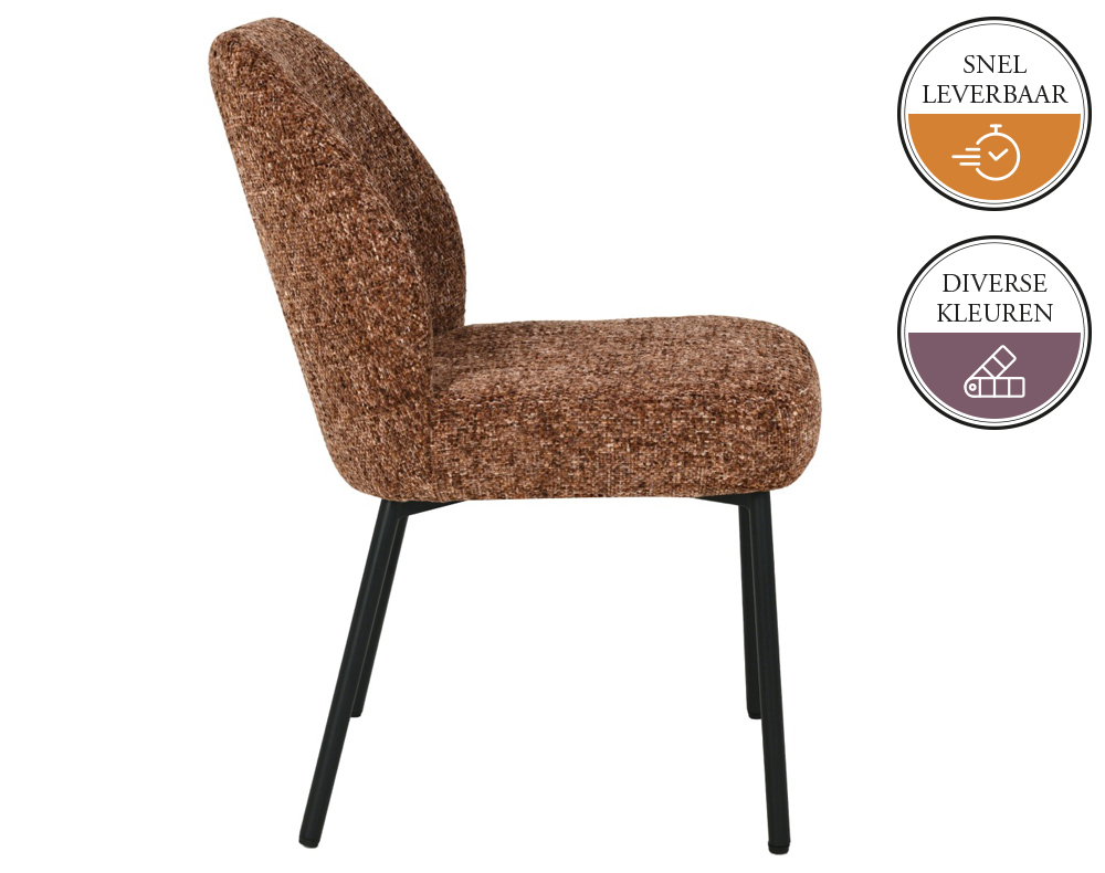 Breng een vleugje warmte en stijl in je eethoek met de BRUCE eetkamerstoel. De zachte, rijk gevoerde bekleding nodigt uit om lekker lang te blijven zitten, terwijl de strakke lijnen en slanke zwarte poten zorgen voor een moderne, rustige uitstraling. Verkrijgbaar in drie prachtige kleuren, Bordeaux, Cream en Honey, hierdoor sluit BRUCE eetkamerstoel moeiteloos aan bij jouw interieur — of je nu houdt van knus, eigentijds of een mix van beide. Met de BRUCE eetkamerstoel voeg je niet alleen comfort toe, maar ook een heerlijke, Cozy sfeer aan elke maaltijd. De BRUCE eetkamerstoel wordt per twee stuks verkocht.