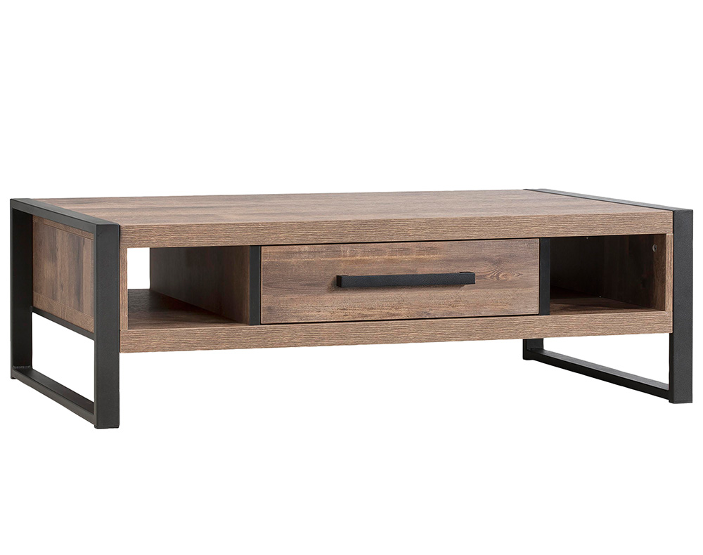 De salontafel uit de DELAWARE serie heeft een blad van lamulux dus een hoge kras-, kleur-, slijt- en stootvastheid. Hij is voorzien van 2 open vakken en een lade zodat er ruimte genoeg is om van alles in op te bergen. Zijn zwart metalen poten geven hem een robuust uiterlijk.
