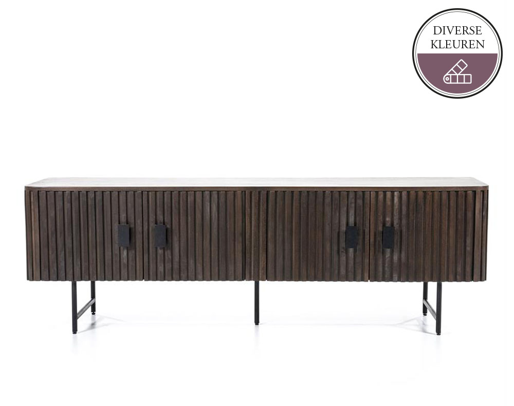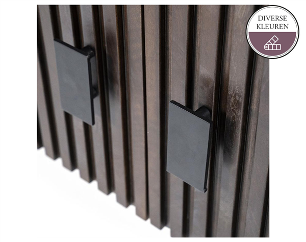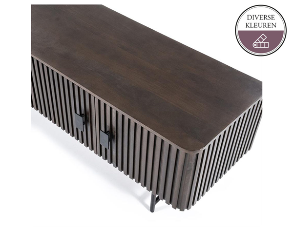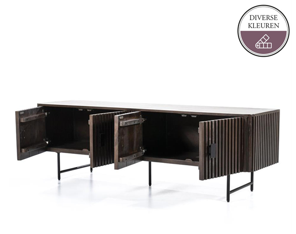 TV meubel EDMONTON is door zijn lamellenstructuur helemaal van deze tijd! Dit TV meubel is verkrijgbaar in bruin en zwart. De metalen pootjes en verfijnde handvaten geven dit vintage model toch een moderne uitstraling. Het TV meubel heeft 4 deurtjes, genoeg opbergruimte dus voor de spullen die je liever uit het zicht wil leggen. In de EDMONTON serie vind je ook een bijpassende kast, boekenkast, dressoir en een TV-meubel met 6 deurtjes.