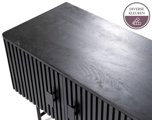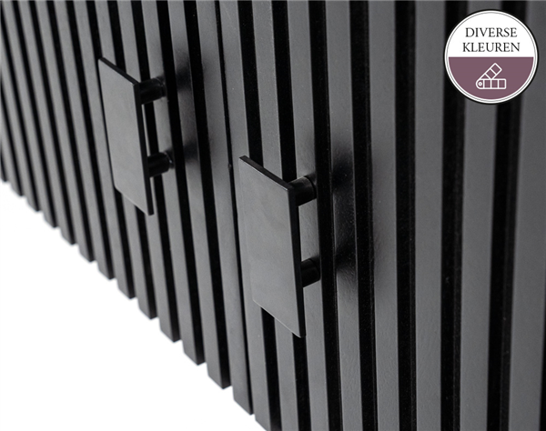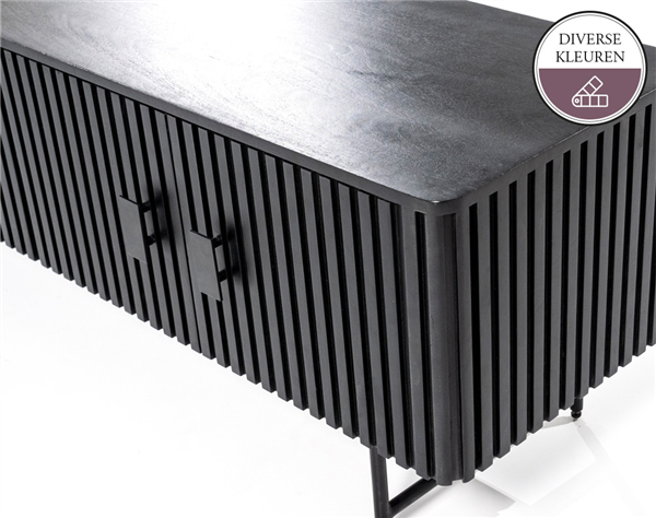 TV meubel EDMONTON is door zijn lamellenstructuur helemaal van deze tijd! Dit TV meubel is verkrijgbaar in bruin en zwart. De metalen pootjes en verfijnde handvaten geven dit vintage model toch een moderne uitstraling. Het TV meubel heeft 6 deurtjes, genoeg opbergruimte dus voor de spullen die je liever uit het zicht wil leggen. In de EDMONTON serie vind je ook een bijpassende kast, boekenkast, klein tv-meubel en dressoir.