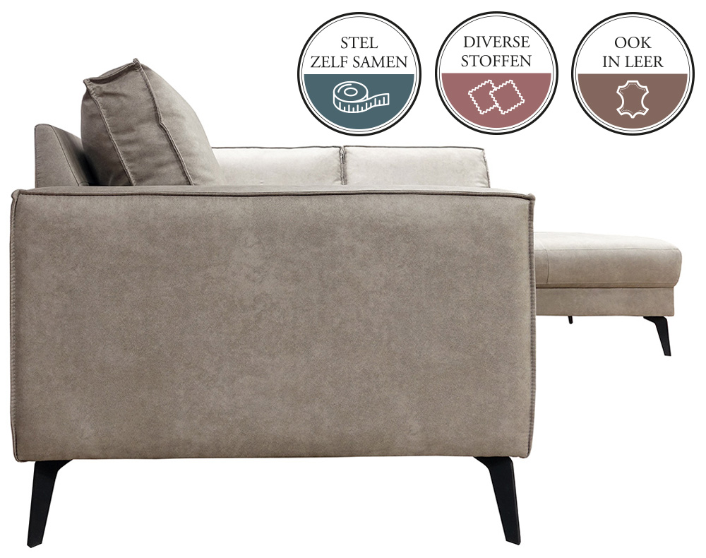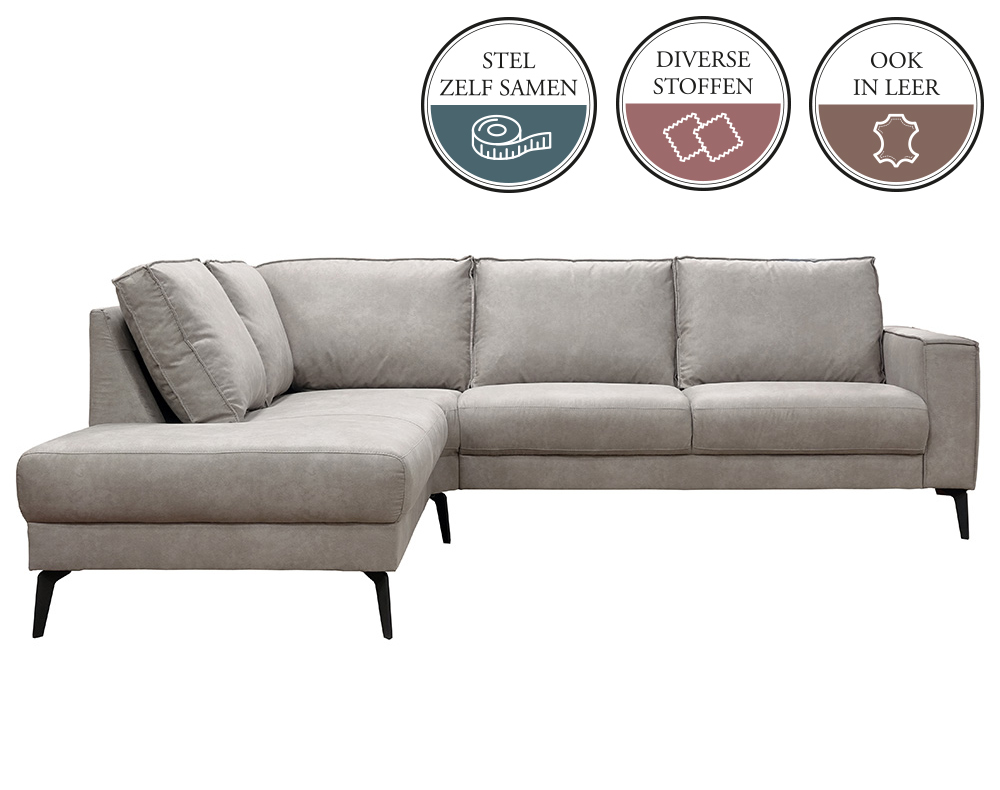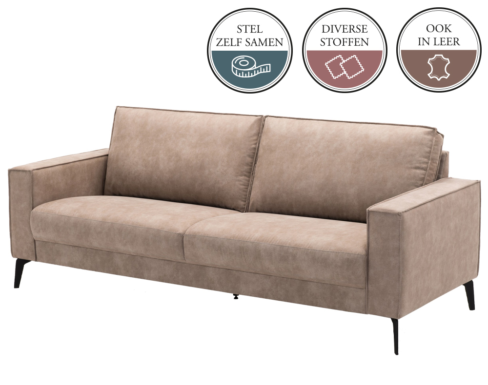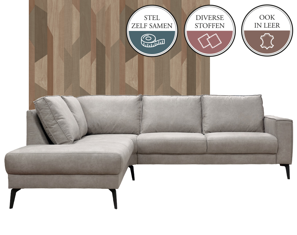 De bank JABIR is een elementenbank. Dat wil zeggen dat je deze bank helemaal naar eigen wens en smaak kunt samenstellen. Je stelt deze JABIR elementenbank zelf samen door de stappen in de configurator te volgen. Een elementenbank wordt altijd samengesteld (terwijl je ervoor staat) van links naar rechts.