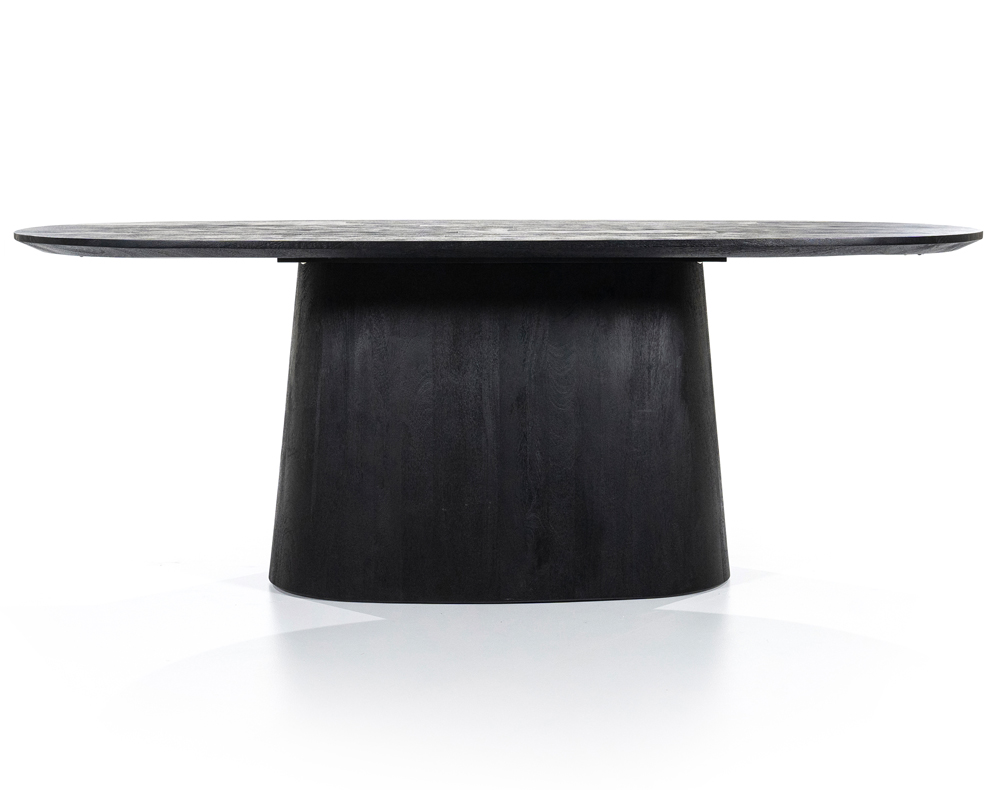 Deze ovale eettafel KANYA is zowel in bruin als in zwart leverbaar. Behalve de afmeting 200 cm, zijn er ook tafels op 250 en 300 cm.