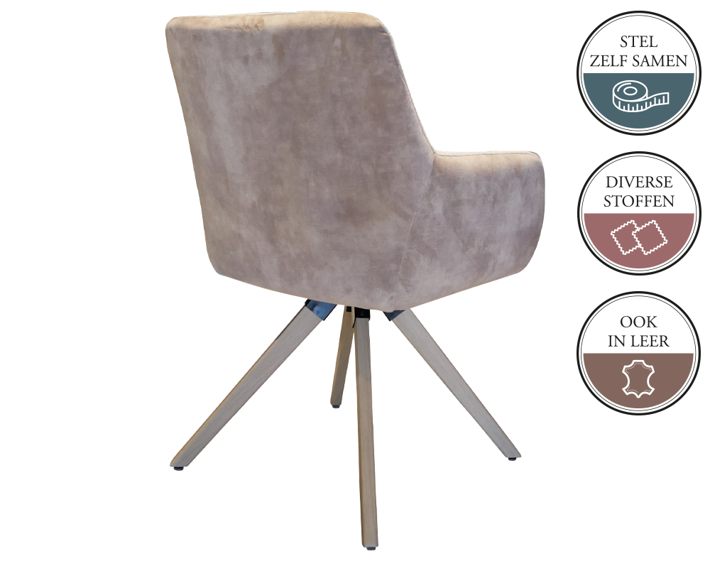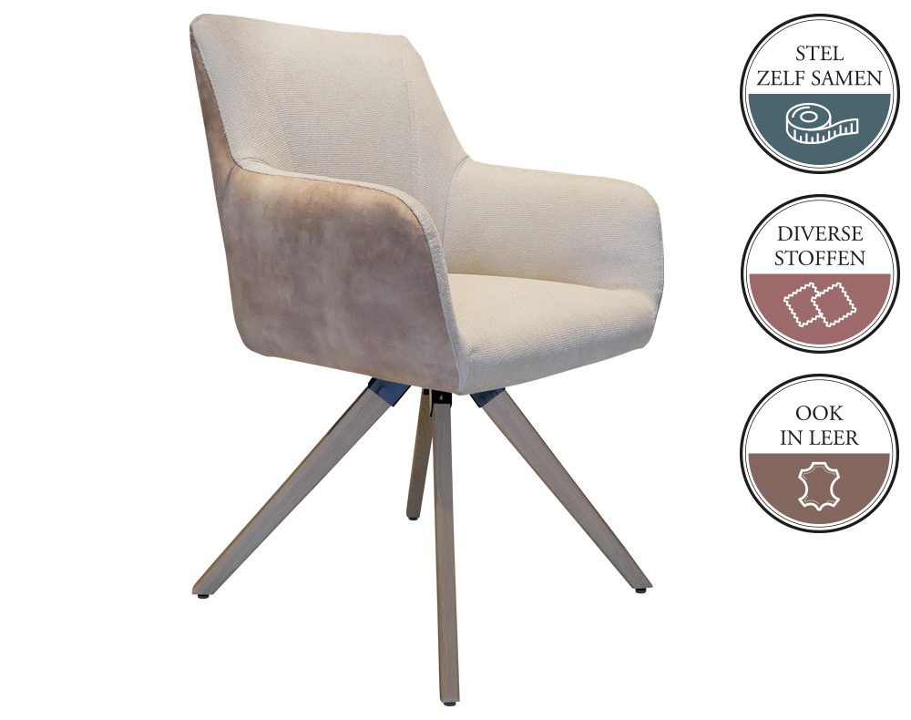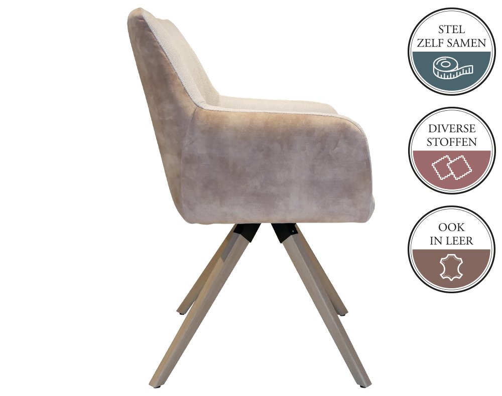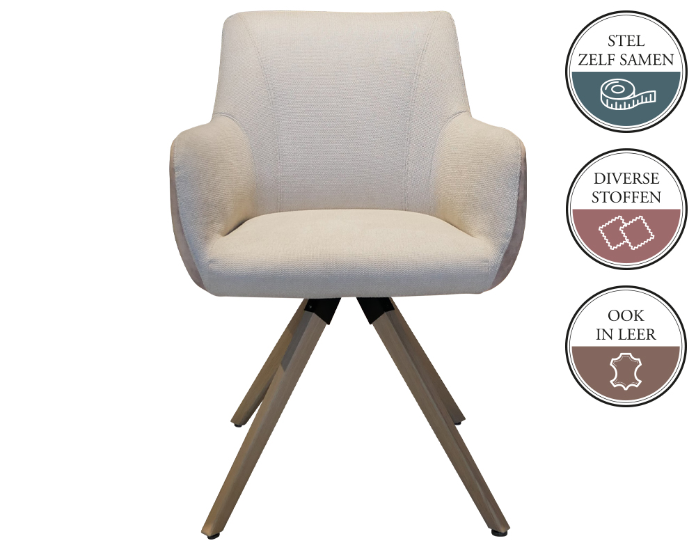 De KARI DUO eetkamerstoel is een zeer comfortabele eetkamerstoel met heel veel mogelijkheden. Je kunt bij deze stoel kiezen tussen een stof of leerkwaliteit op de binnenkant en een andere stof of leerkwaliteit op de buitenkant van de stoel. Laat je inspireren in het keuze menu onder de stap Kleuren.