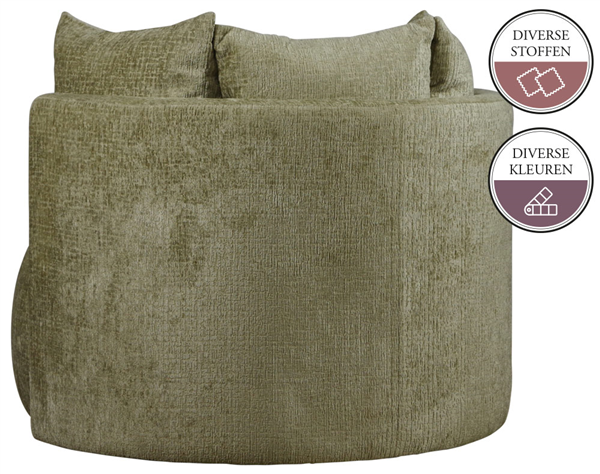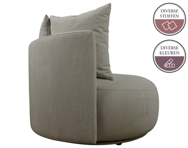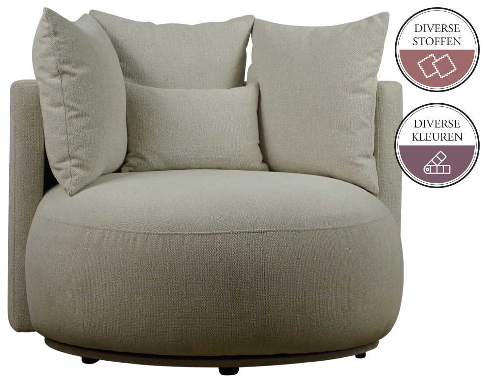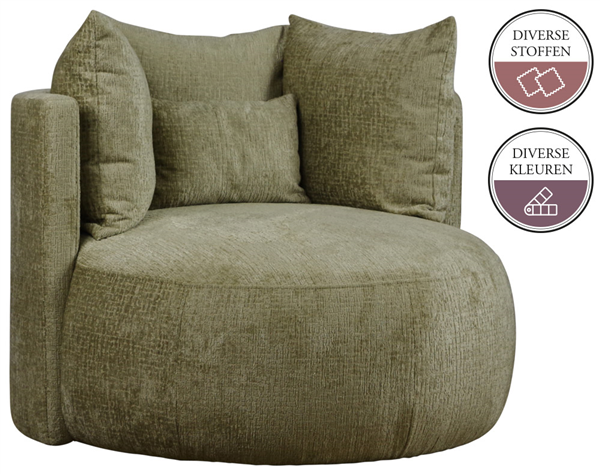 De KIKI fauteuil is leverbaar als gewone fauteuil en als draaifauteuil.