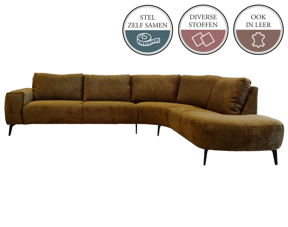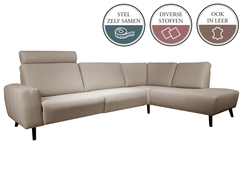 De trendy bank KRISTE is zeker geen 13 in een dozijn en heeft vele oplossingen. Zoals een rond lopende hoek, geen verloren zitplek dus. De achterzijde van de hoek loopt vloeiend rond, ook in de vrije ruimte is dit dus een prachtig item. Er is een ruime keuze uit vele stofsoorten en microleer of leder in een groot aantal kleuren.