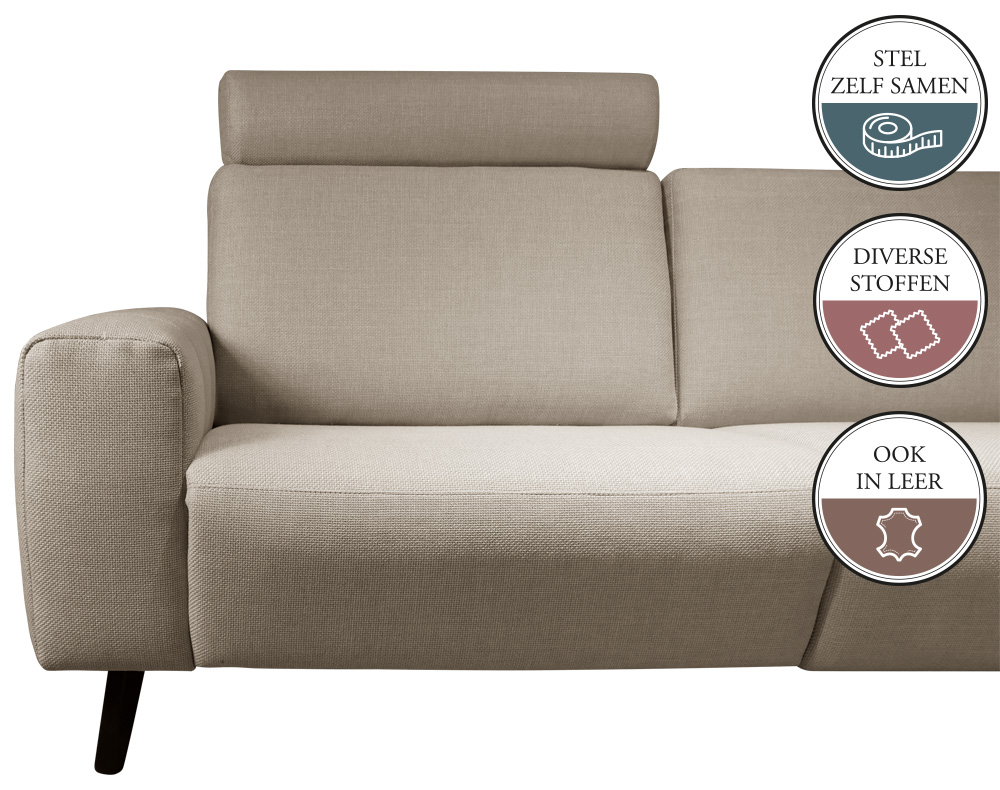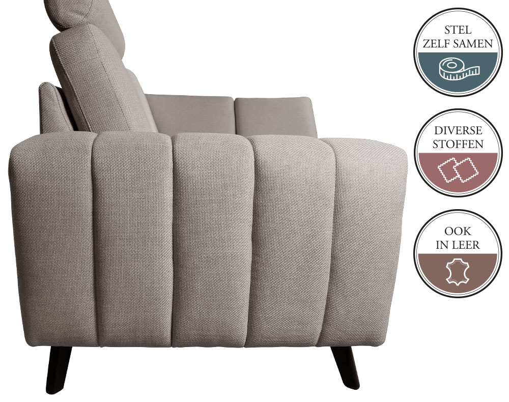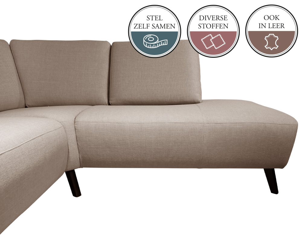 De bank KRISTE is een elementenbank. Dat wil zeggen dat je deze bank helemaal naar eigen wens en smaak kunt samenstellen. Je stelt deze KRISTE elementenbank zelf samen door de stappen in de configurator te volgen. Een elementenbank wordt altijd samengesteld (terwijl je ervoor staat) van links naar rechts.