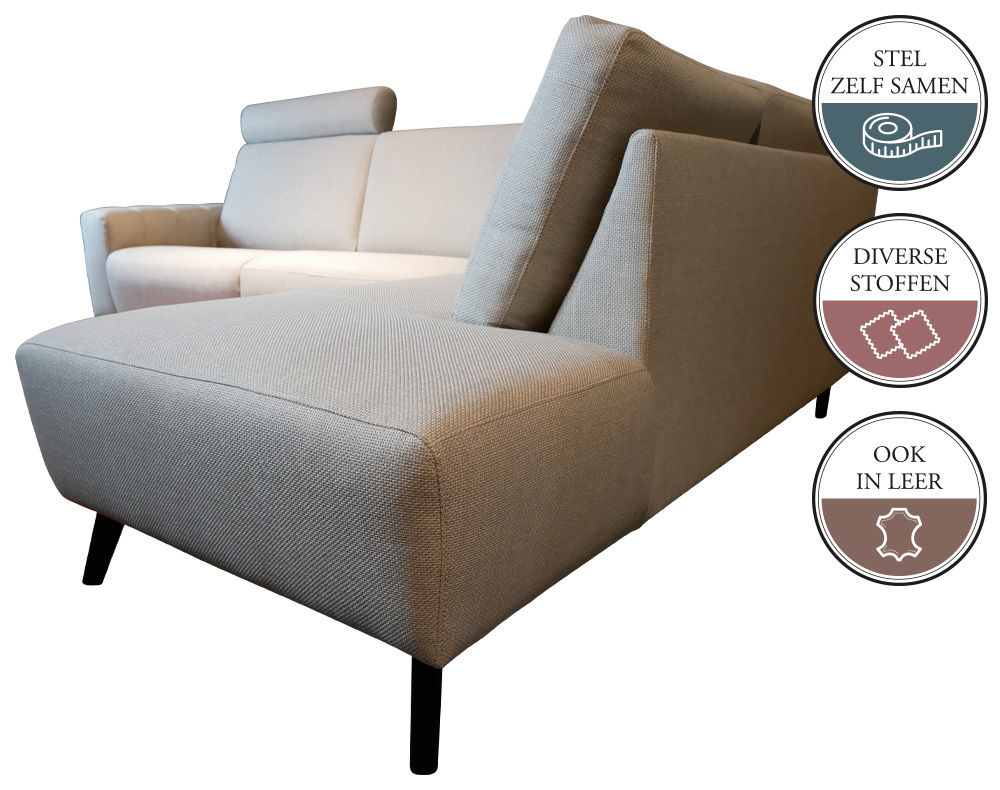De trendy bank KRISTE is zeker geen 13 in een dozijn en heeft vele oplossingen. Zoals een rond lopende hoek, geen verloren zitplek dus. De achterzijde van de hoek loopt vloeiend rond, ook in de vrije ruimte is dit dus een prachtig item. Er is een ruime keuze uit vele stofsoorten en microleer of leder in een groot aantal kleuren.