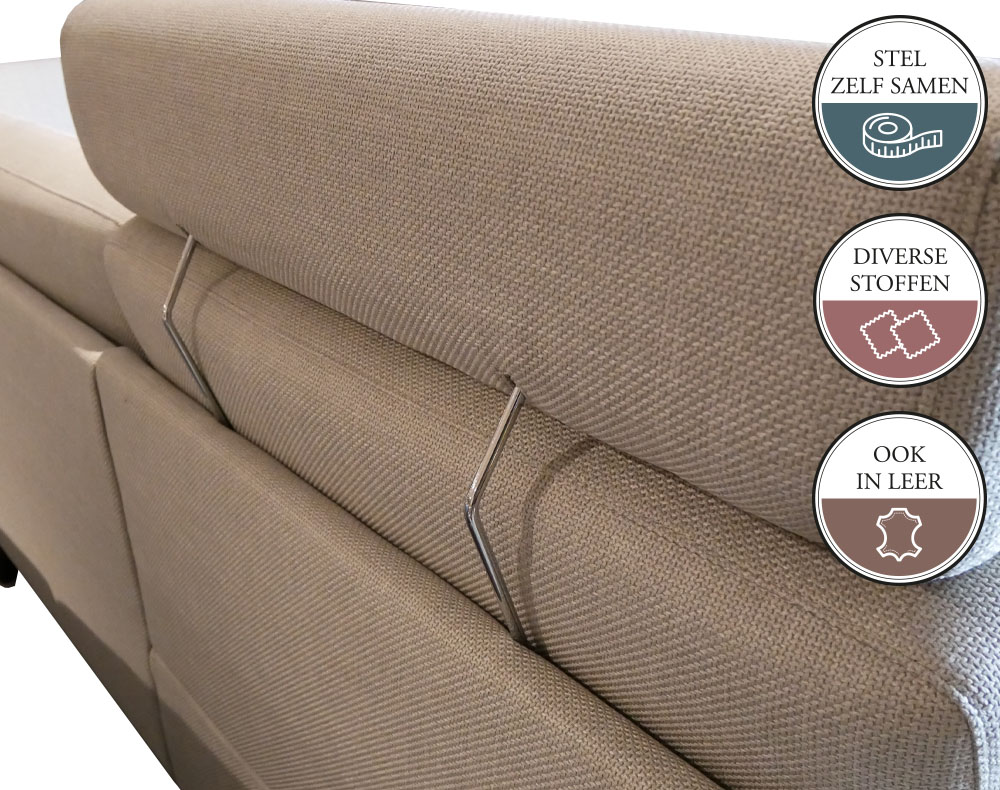 De KRISTE hocker (poef) en de KRISTE hoofdsteun (nekkussen) - in diverse uitvoeringen en afmetingen - zijn extra opties. Je kiest een nekkussen in dezelfde breedte als het element waarvoor je het gaat gebruiken. Advies: als je kiest voor een elektrisch deel, dan adviseren wij altijd als extra optie een hoofdsteun te kiezen.