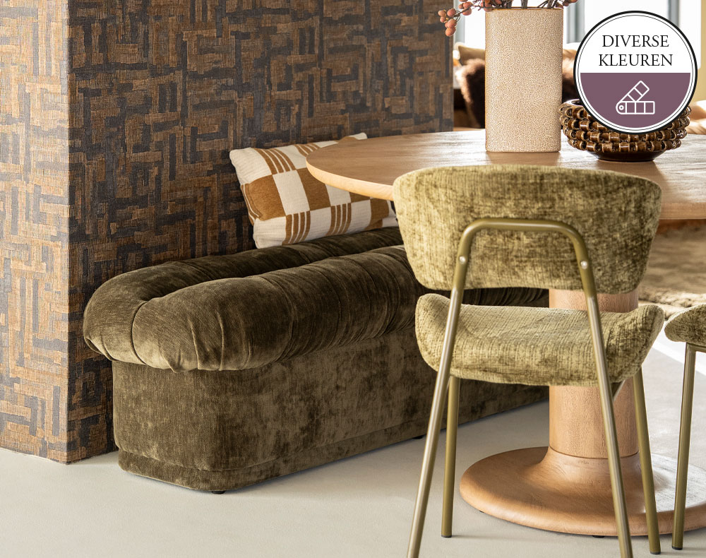Deze stof heeft een chique uitstraling met een hoog aaibaarheidsgehalte. Velours is meestal gemaakt van 100% polyester en is er in diepe, intense kleuren. Deze stoffen hebben een hoge Martindale-score, wat betekent dat de stof heel stevig is en geschikt is voor zeer intensief woongebruik.