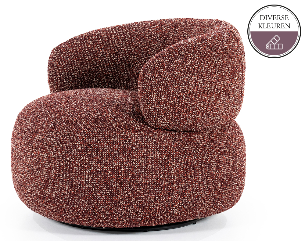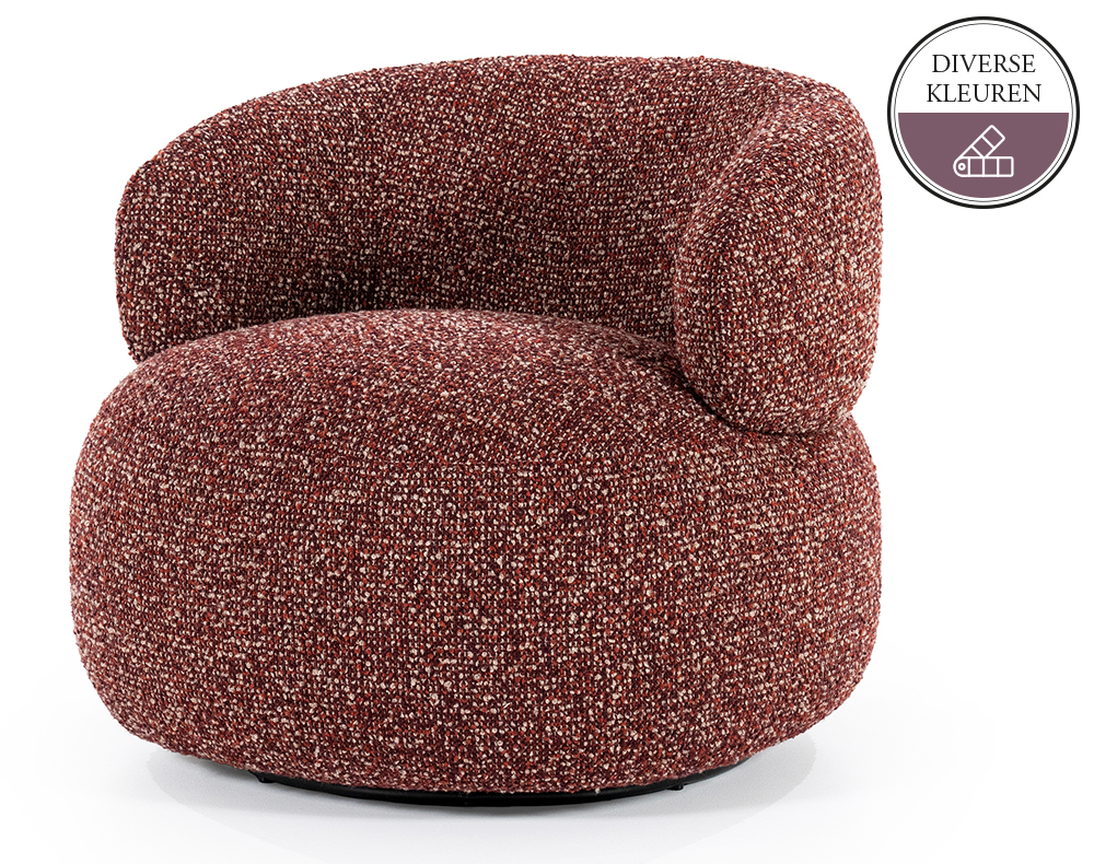 De MARLOES fauteuil is verkrijgbaar in 4 kleuren. Ga jij voor rood, beige, taupe of zwart? De fauteuil is uitgevoerd in de stof Maywood.