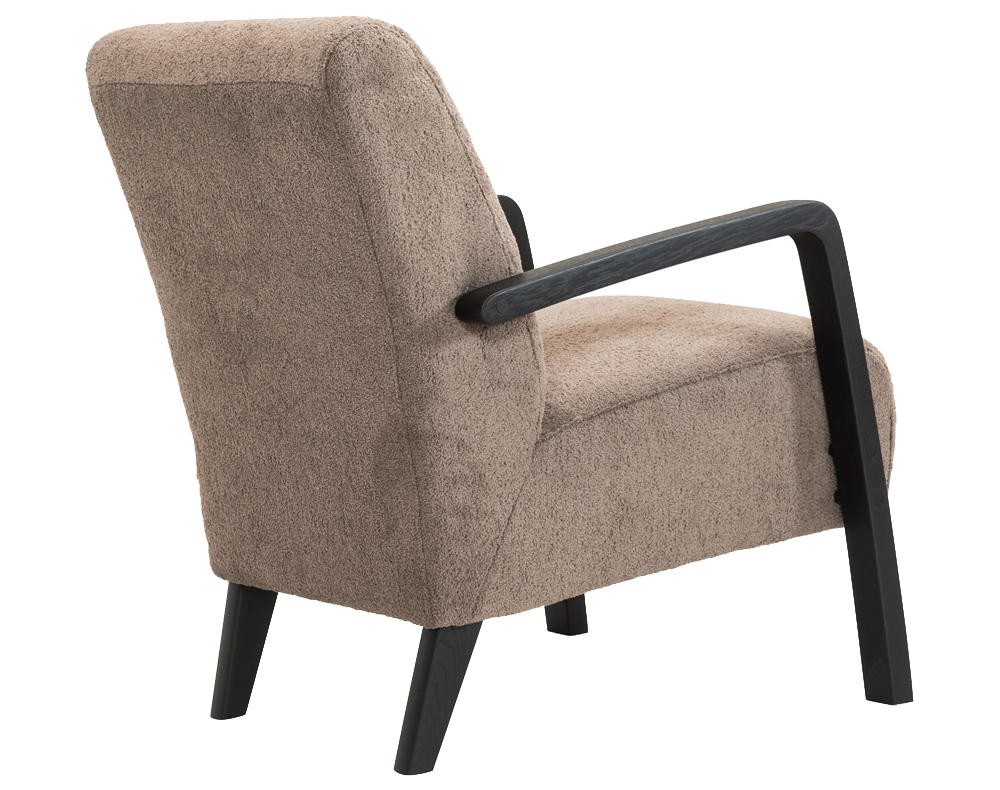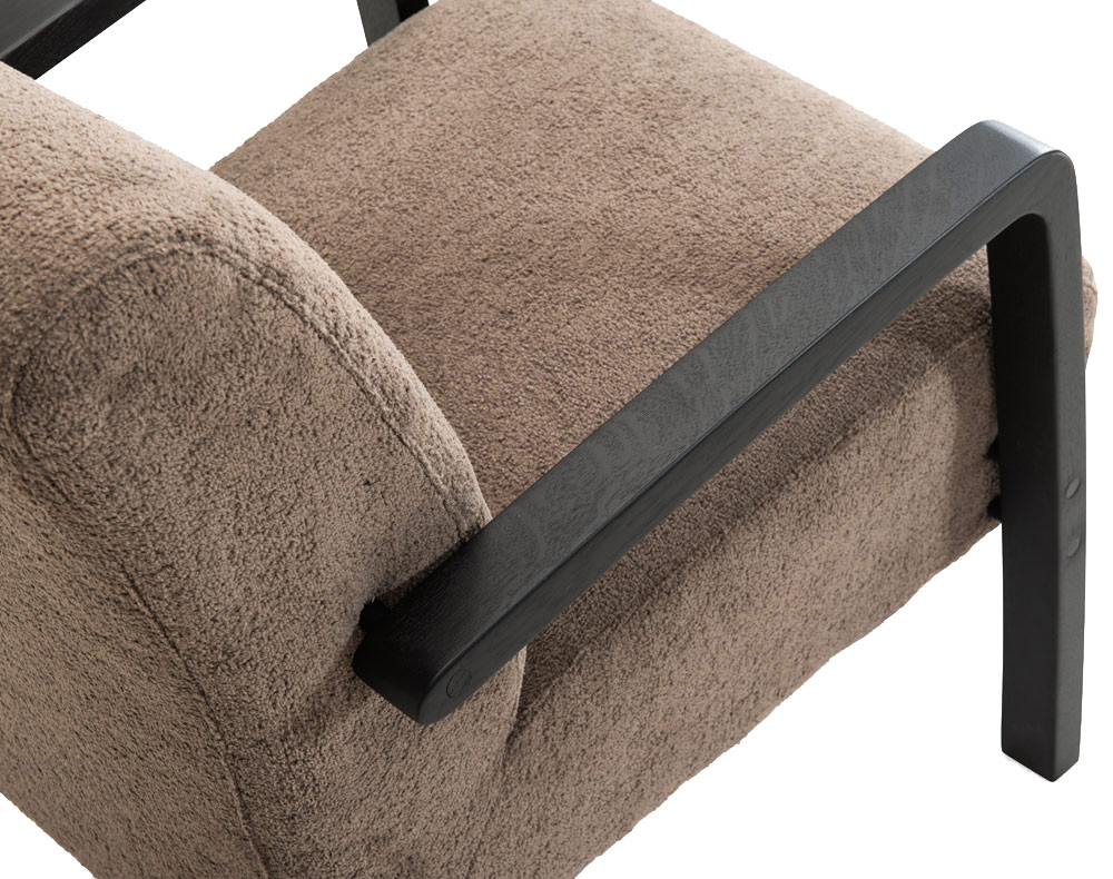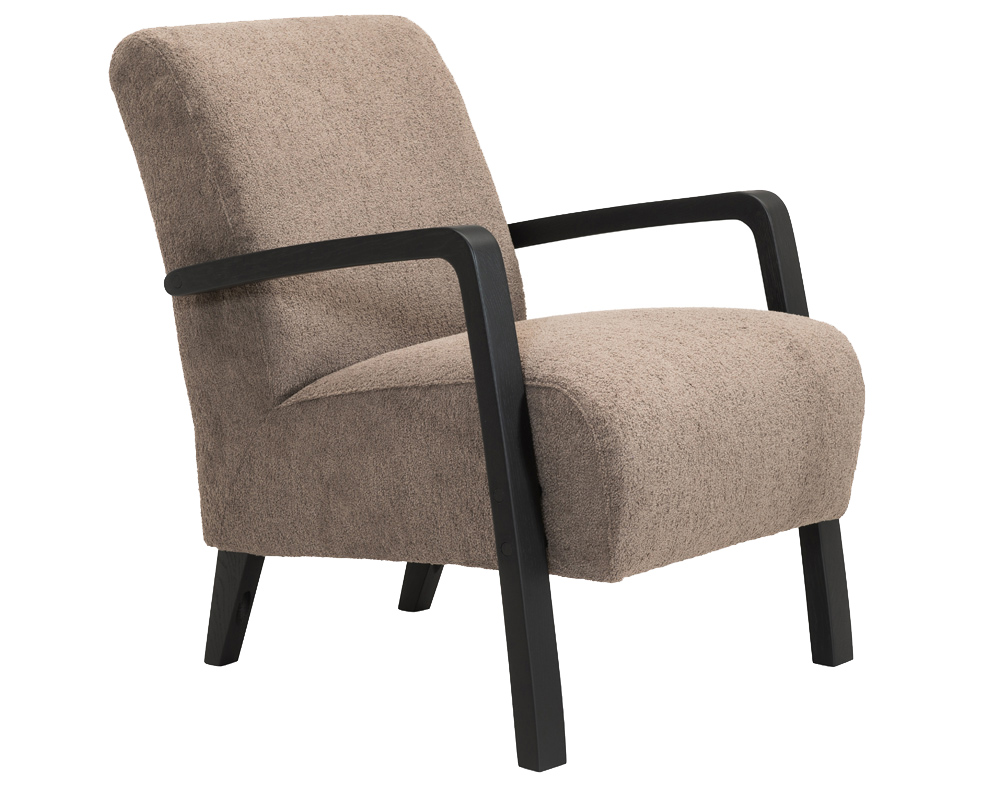 Helemaal van nu! De woonbladen en woonprogramma's staan er vol mee. Japandi stijl fauteuil MILO met licht eikenhout.
