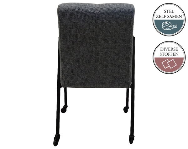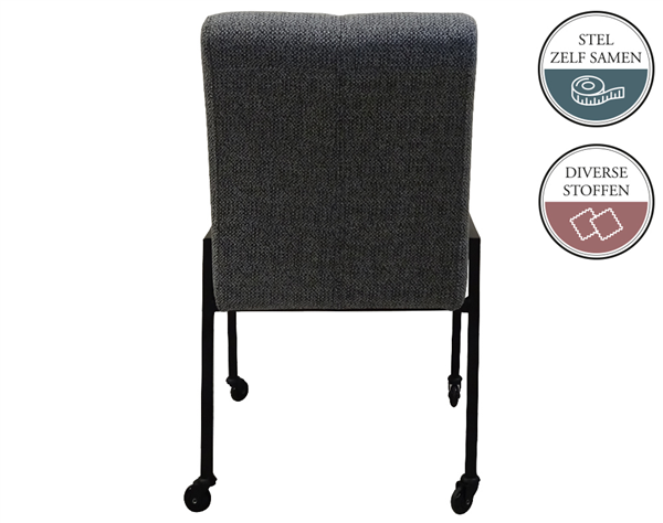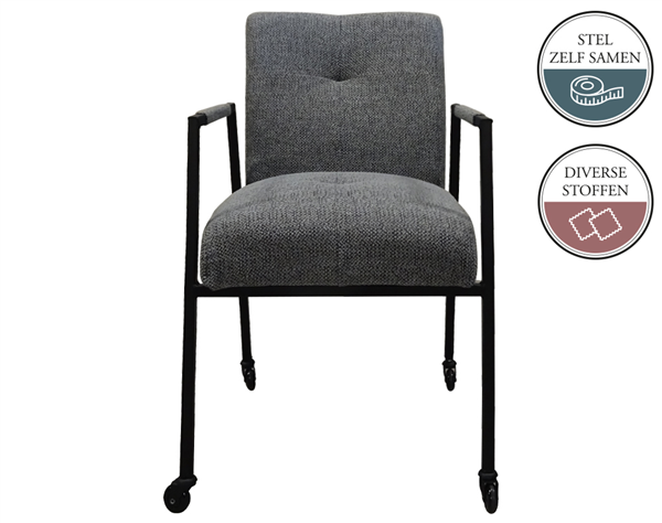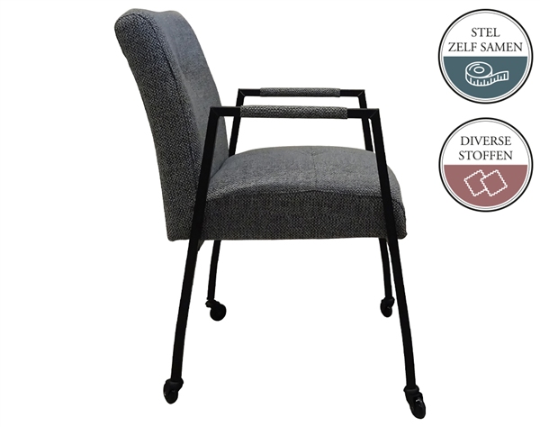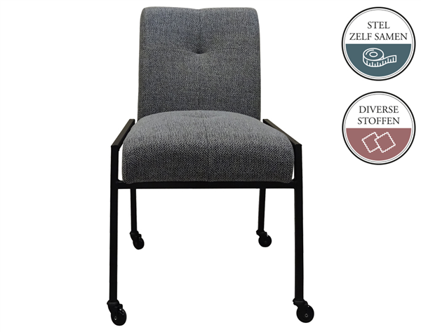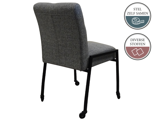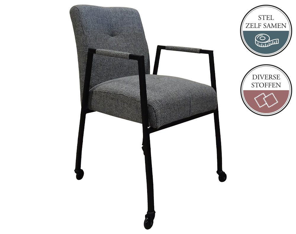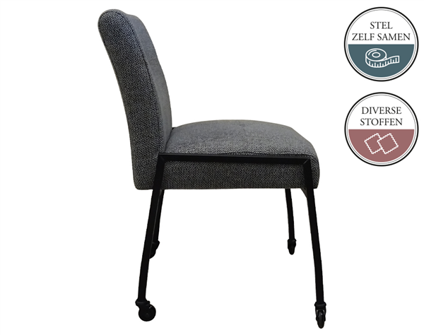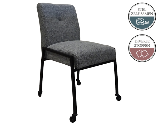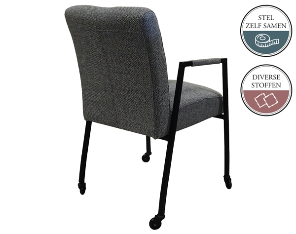 Op zoek naar een mooie eetkamerstoel op wieltjes? Zoek niet verder, eetkamerstoel NADETTE is hier speciaal voor jou. De stoel is leverbaar met of zonder armleuningen en in talloze verschillende kleuren en stoffen. Mocht je toch geen wieltjes willen, dan is dat ook mogelijk.