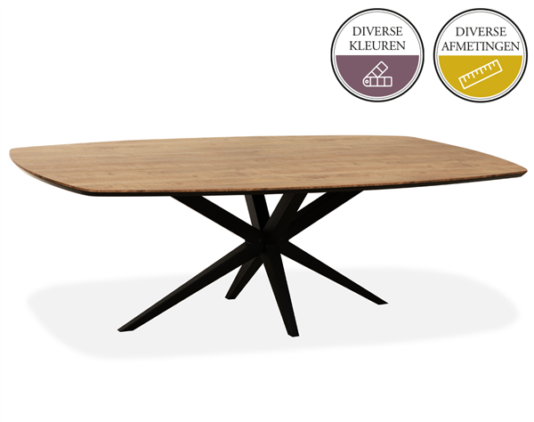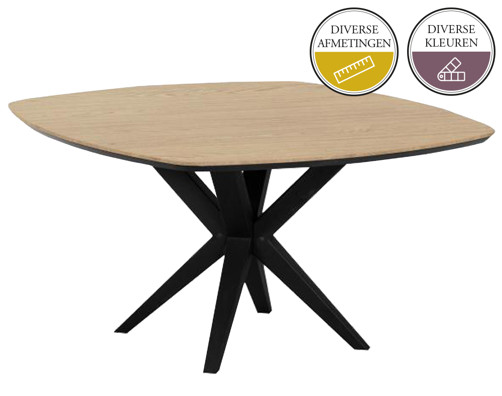 Door de vele mogelijkheden van de eettafel NIELS zit er altijd een tafel van jouw keuze bij. De tafels worden uitgevoerd met zwart metalen spinpoot. Er zijn ovale, Deens ovale, Deens vierkante, ronde en ook rechthoekige tafelbladen mogelijk.