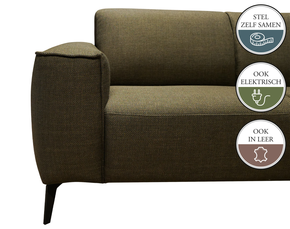 De 1 en 1,5-zits Elementen zijn verkrijgbaar met een handmatig te verstellen hoofdsteun. Wil je dit element ook nog elektrisch kunnen verstellen, dan kies je onder de Stap Hoofdsteun voor de optie: hoofdsteun - ja + elektrische functie. Als optie is een accu leverbaar. Als deze extra wordt besteld zal het elektrisch deel niet worden uitgevoerd met een snoer.