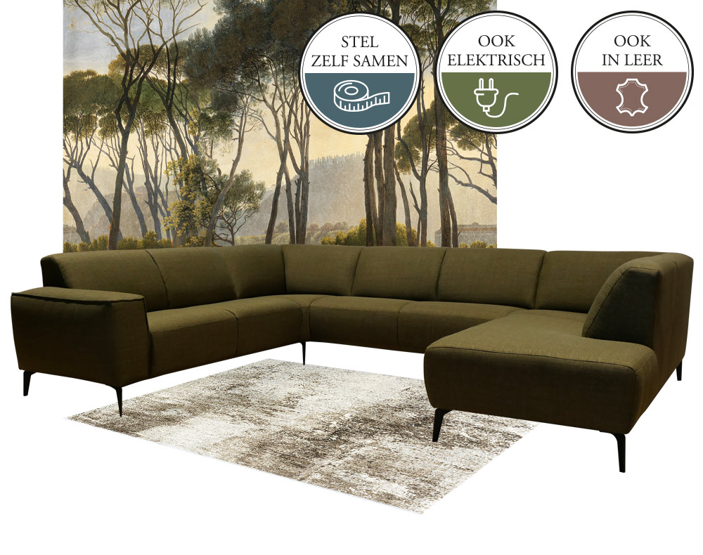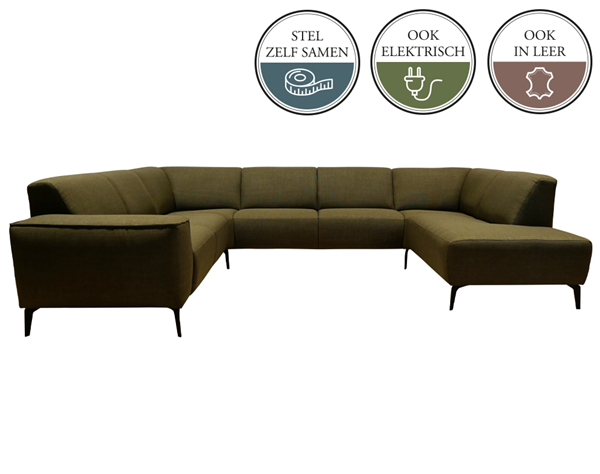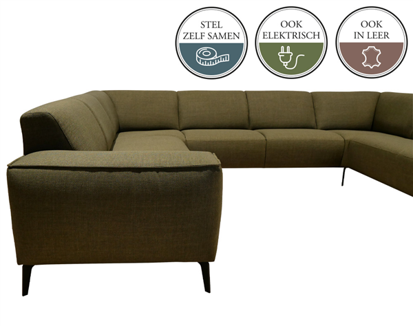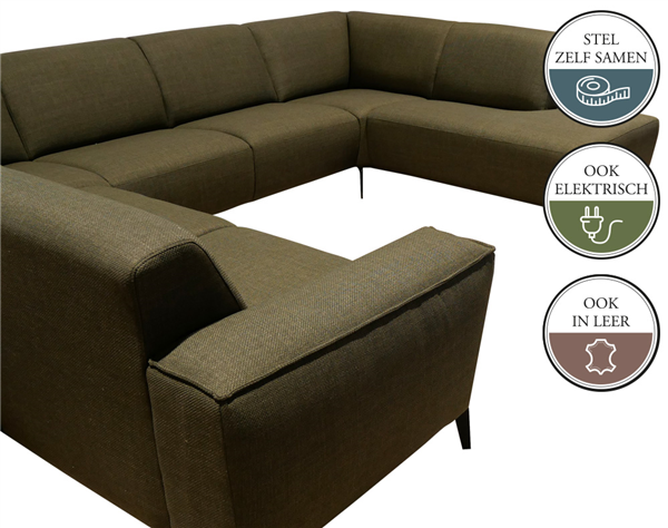 Dit zijn de onderdelen waarmee je je eigen bank samenstelt. Je combineert bijvoorbeeld een arm links met een ander element.