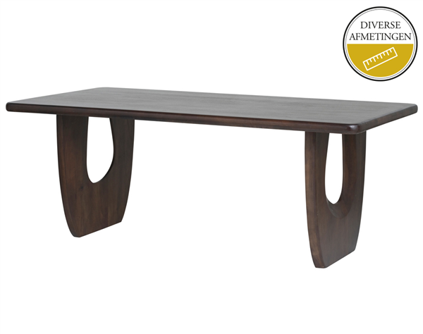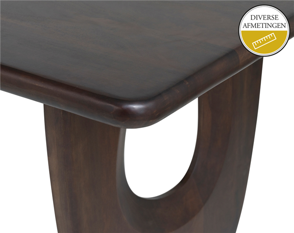 De SABIEN Eettafel is uitgevoerd in massief Mangohout, kleur Brown Walnut, gelakt. De eettafel is in diverse afmetingen te verkrijgen.