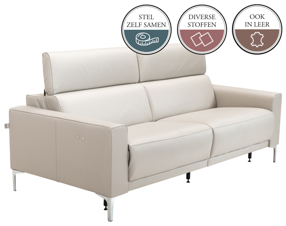 Heerlijke chill bank SANNE met een vleugje Retro, helemaal van nu. Met het elektrische deel is het helemaal fijn relaxen! Mooie design belijning en een perfect comfort. Er is een ruime keuze uit vele stofsoorten en microleer of leder in een groot aantal kleuren.