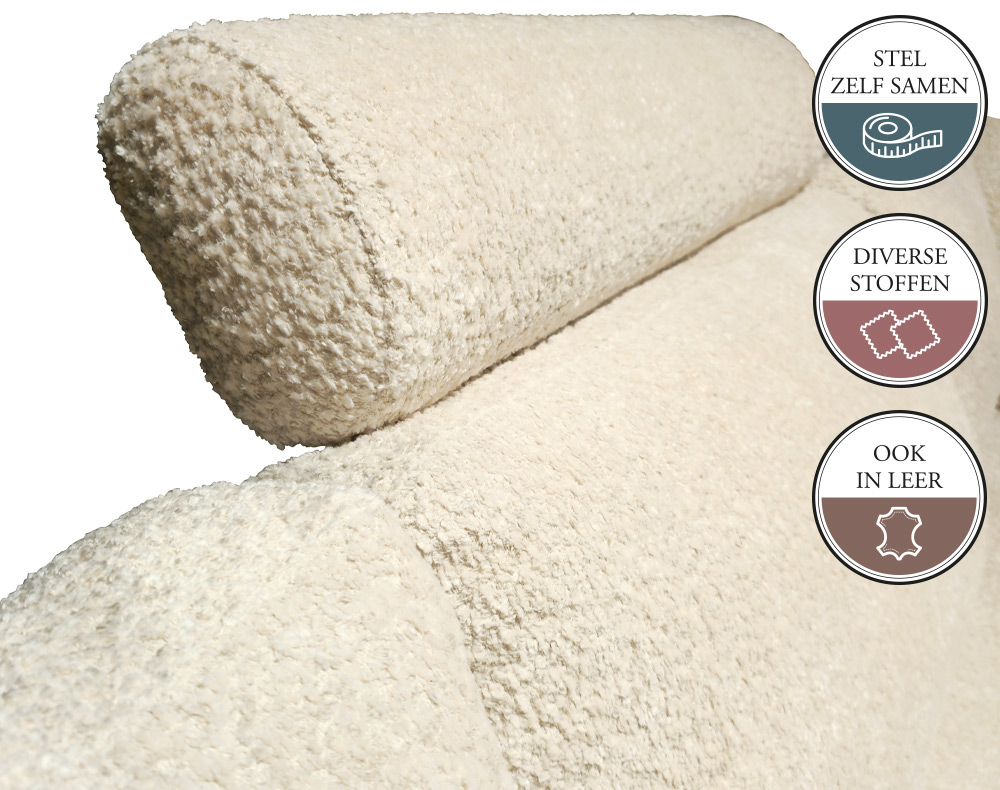 Extra opties: De SVEN hocker (poef), de SVEN hoofdsteun (nekkussen) - in diverse uitvoeringen en afmetingen en de SVEN armsteun. Je kiest een nekkussen in dezelfde breedte als het element waarvoor je het gaat gebruiken. Advies: als je kiest voor een elektrisch deel, dan adviseren wij altijd als extra optie een hoofdsteun te kiezen.