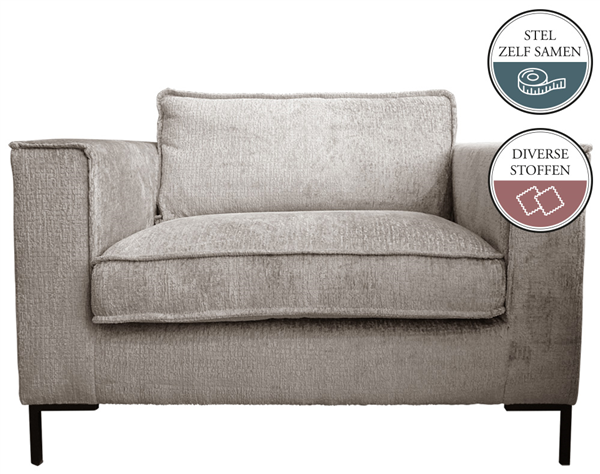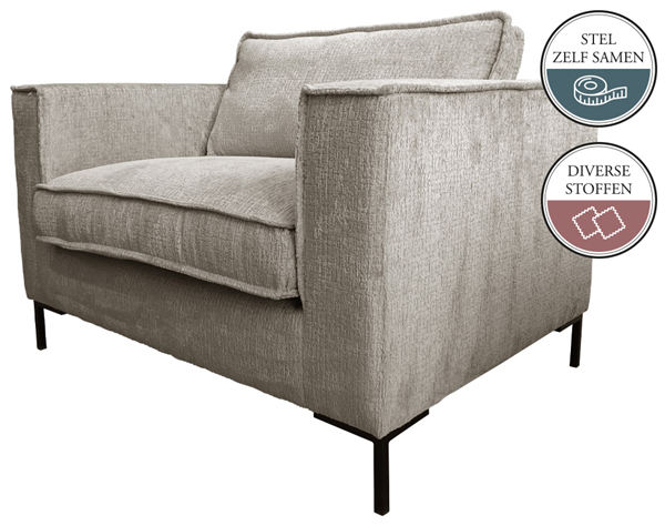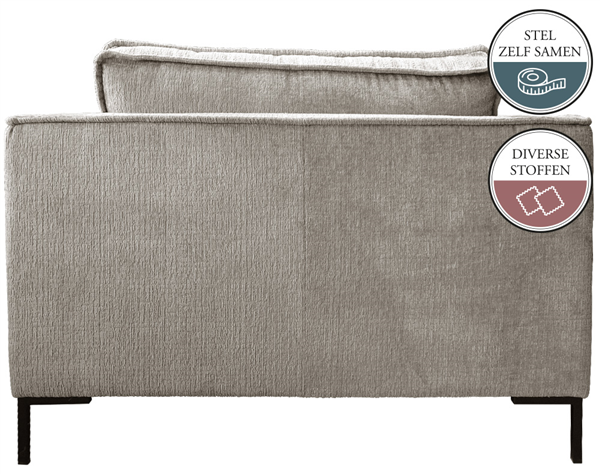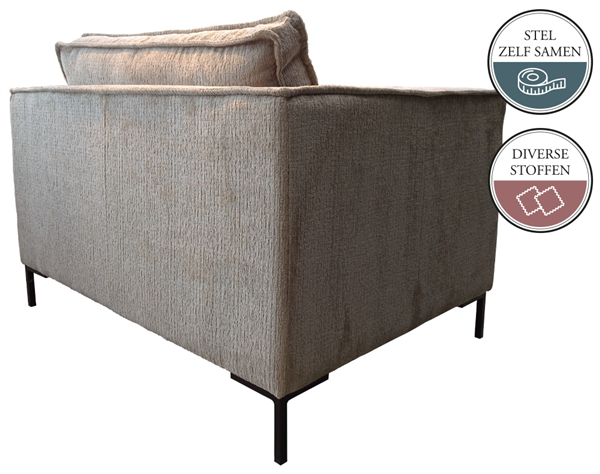 Een fauteuil, 2-zits, 3-zits etc… zijn standaard opties. Wil je echter zelf je droombank samenstellen, kijk dan onder Elementen.