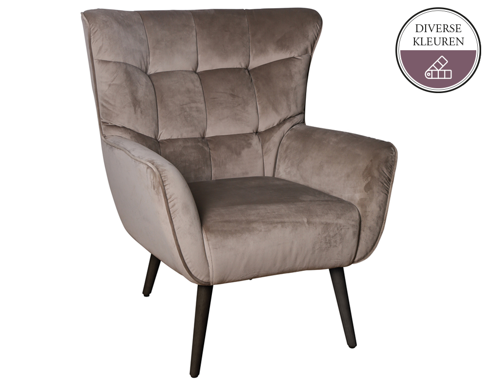 De TAMIRA fauteuil is verkrijgbaar in 5 hippe kleuren. Ga jij voor grijs, roze, olijf, blauw of zandkleur? De fauteuil is uitgevoerd in de stof Velvet.