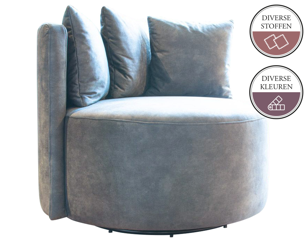 De ULAN Draaifauteuil is verkrijgbaar in diverse stoffen en kleuren.