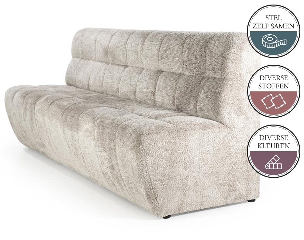 Je kunt kiezen voor een rechte eetbank maar het is ook mogelijk een element met een hoek te kiezen. Hierdoor kan je zelfs een U-vormige eetbank samenstellen. Elk element is rondom gestoffeerd. Je bent helemaal vrij het element zo in de ruimte te plaatsen als jij wenst.