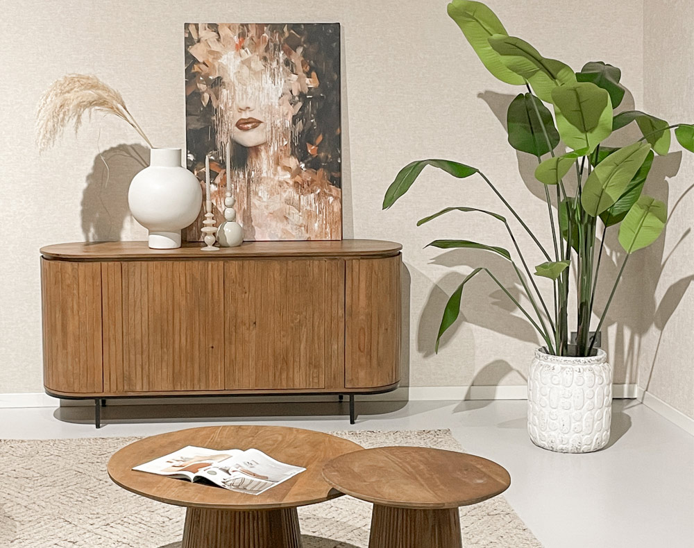 De afgeronde hoeken en de speelse latten maken dit een echte eye-catcher voor je woonkamer.