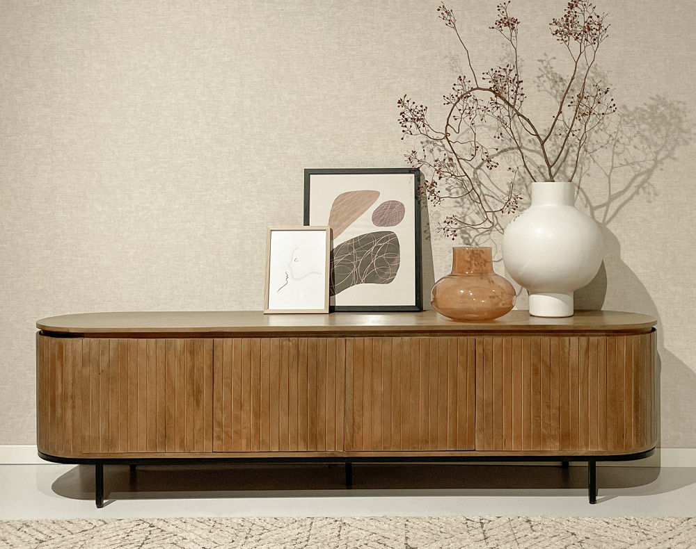Het mangohouten Wornu tv-meubel is er in 2 kleuren en in 2 maten. En om het helemaal af te maken is er ook een dressoir en een kabinet in deze serie.
