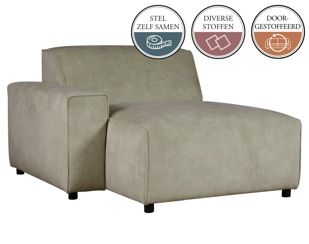 De mooie bank YESS is een elementenbank. Dat wil zeggen dat je deze bank helemaal naar eigen wens en smaak kunt samenstellen. Je stelt deze YESS elementenbank zelf samen door de stappen in de configurator te volgen. Een elementenbank wordt altijd samengesteld (terwijl je ervoor staat) van links naar rechts. Omdat de elementen van deze bank doorgestoffeerd zijn is het zelfs mogelijk elk element apart te bestellen.